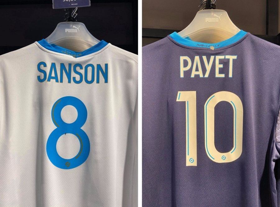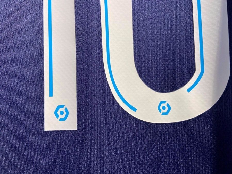 已经摆上俱乐部商店货架的马赛2020/21赛季主客场球衣上已经印制了新赛季联赛球衣号码与球员姓名,与上赛季的球衣号码和球员姓名相比,新赛季球衣印字的字体看起来更具现代感,并且号码与字母中还加入使其更具立体感的条纹。并且号码底部还加入了一个全新标识,按照上赛季球衣号码推断的话,这个以六边形呈现在人们面前的标识应当是全新法甲联赛的赛事标识。