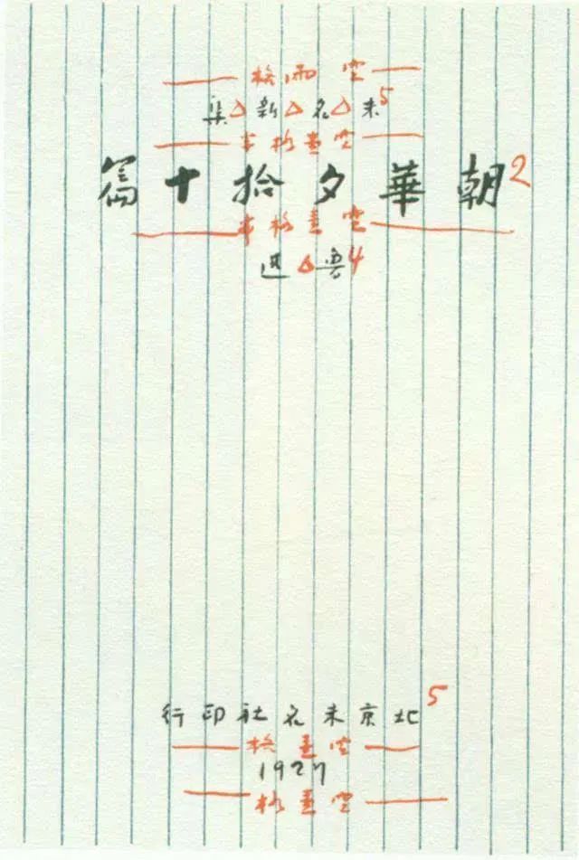 鲁迅先生在印刷时细致的标注了空行和空格的位置,对于字号大小,可见先生在设计时有自己的一套理论思路的。
