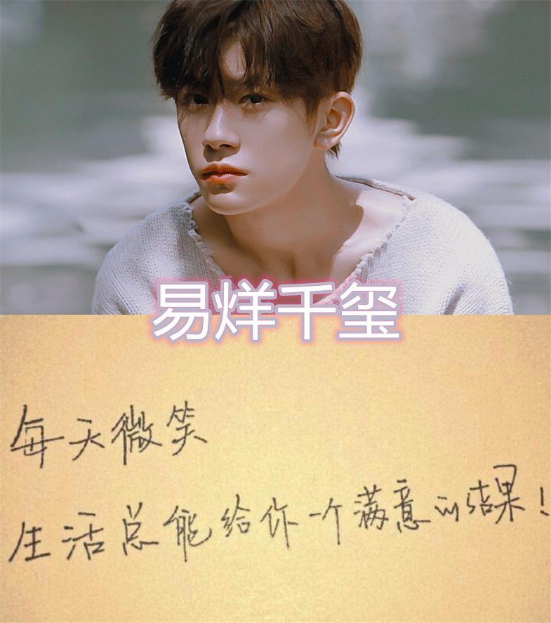 到后面的就是易烊千玺,他的年纪还是比较小的,相信大家也都认识,很多人都是看着他长大的,到现在发展非常的好,还是有很高的国民度的,这个男生也是从很小的时候就开始练字了,毛笔字写的非常好,看图中他的字体,也是很多人都有见识过的,同样也是很清楚,很好看的。
