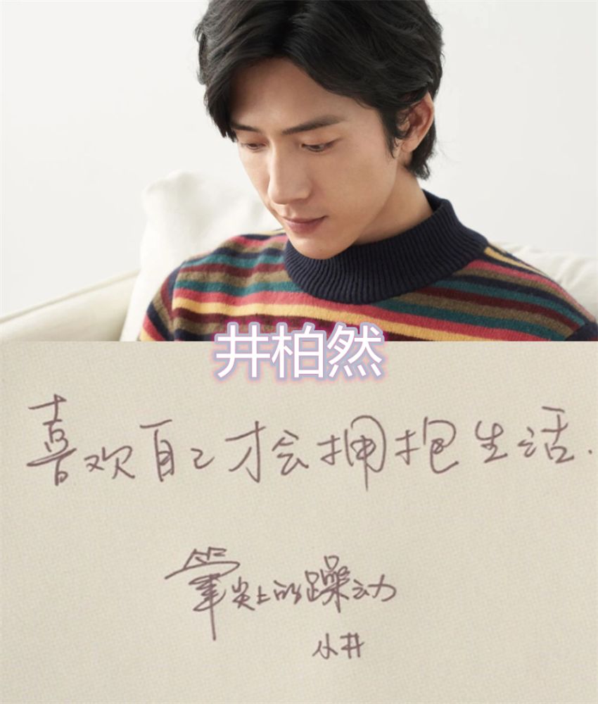最后的就是井柏然,他是选秀节目出道的,这个可能很多人都不太意识到,而这个男生最近几年在影视方面的发展还是很好的,不管是电影还是电视剧都有自己代表的作品,后续也有在拍的剧,大家都是十分期待的,看图中就是这个男生的字了,也是被很多人夸好看的,整体还有设计感,不知道大家看完这些都是什么感觉呢