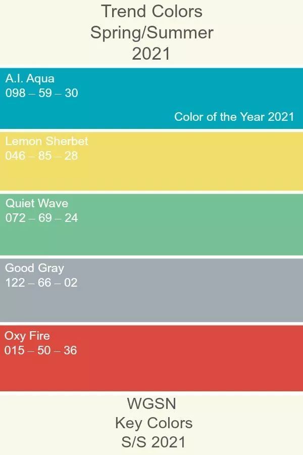 若说要窥探未来,这次由趋势预测网站WGSN 携手与色彩指南Coloro,合作的《Key colors for S/S 21》绝对是一台时光机,透过释出了五个代表 2021 年度的趋势色票,先行带领我们预览未来。