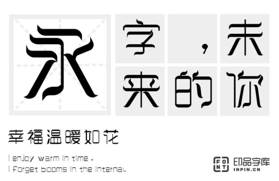 这是一款自带美颜效果的字体。从横撇点勾处做了仿丝带设计,字里行间不再肉,细节处醒目突出,让字体自带飘逸飞扬的自由感,字形正如其名“印品飘艺体”。给人一种简约的美感,满满的艺术气息。作为名片字体不仅简约大方,还传达出个人个性魅力。还适用于封面设计、广告设计、影视以及社交网络的个性化用字等。