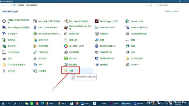 这里我们可以打开控制面板,查看方式选择图标方式,从中找到字体图标,并双击打开字体管理器
