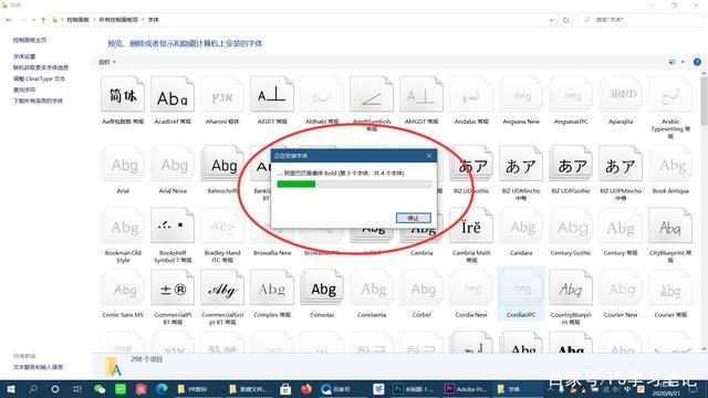 等待安装进度条完成,所有要安装的字体就安装到电脑里了