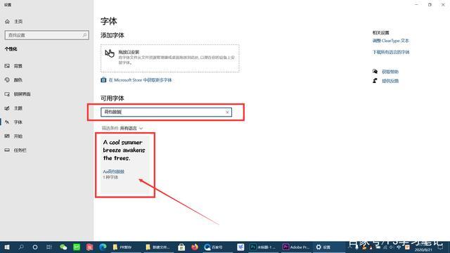 然后关闭一下这个字体窗口,重新打开桌面--个性化--字体窗口就可以看到安装好的字体,如果太多找不到可以点可用字体下的输入框输入字体名字搜索就可以找到安装的字体,