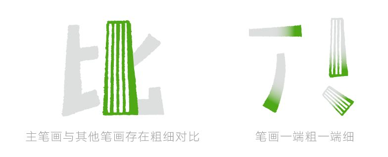 该字体笔画有着明显的粗细变化:主要笔画与次要笔画有着明显粗细对比;每一个笔画本身也有明显的粗细变化。