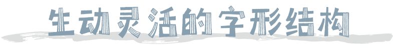 该字体的结构生动灵活:充满粗细变化的笔画使得字形看起来有种被风吹动的摇摆感;部分字形采用了美术字常用的变形手法,使得字形看起来更加俏皮可爱。
