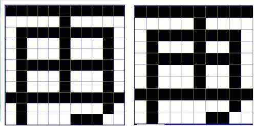 从上面两图比较中我们可以看出,左图字面大,占像素多,内白均匀舒适、清晰易读。右图字面小,占像素少,因此,内白不匀称、识读效果变差。