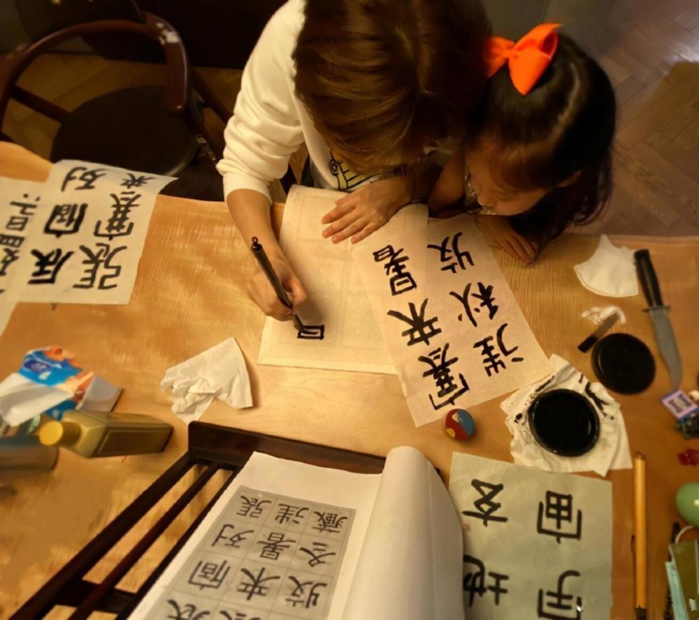 孙俪带着小花妹妹一起练字,女儿字体获称赞