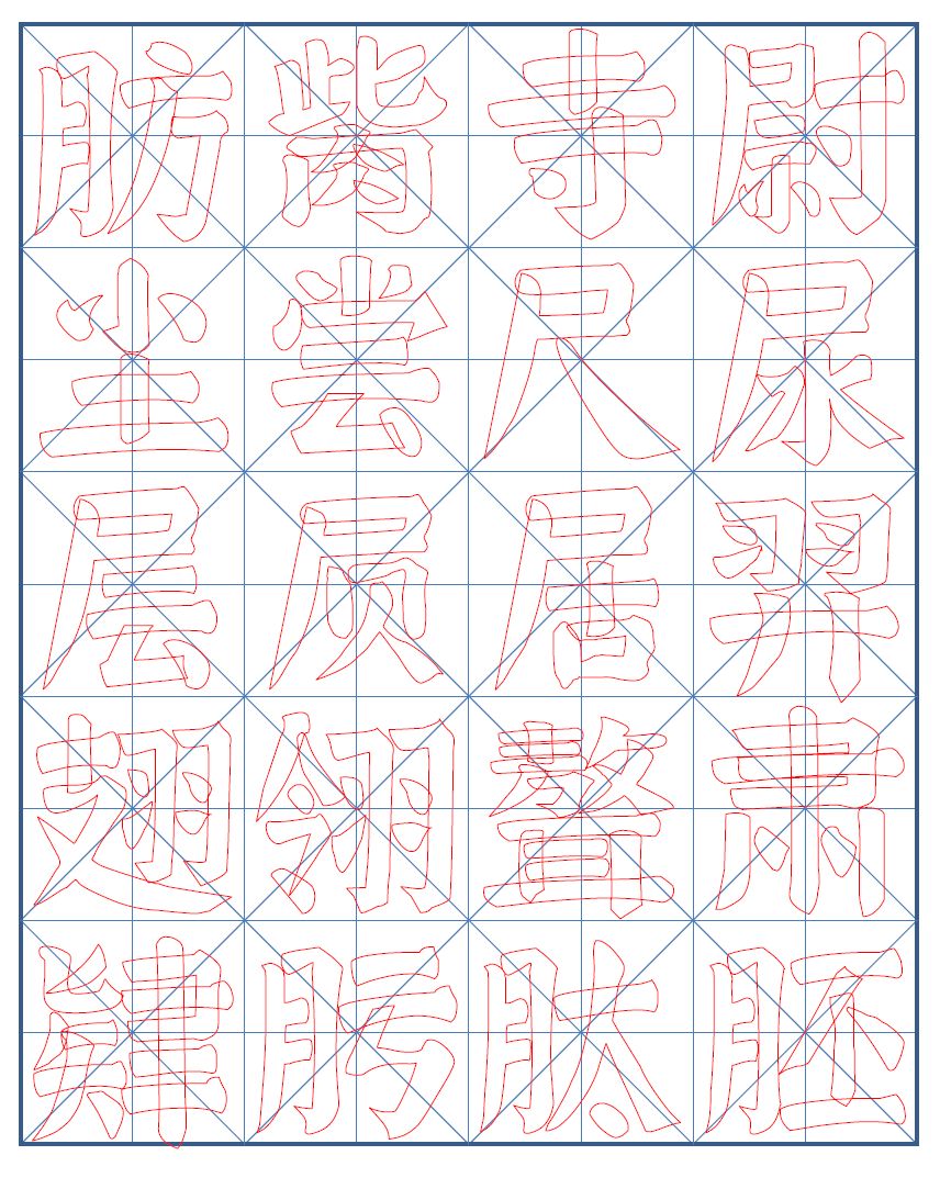 字形入笔追求传统,多采用传统的藏锋左切结构(避免右倾刀锋结构)