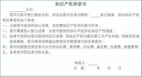 3、对于业务已自行签订涉及图片、字体设计的合同,要求对方出具如下《知识产权承诺书》