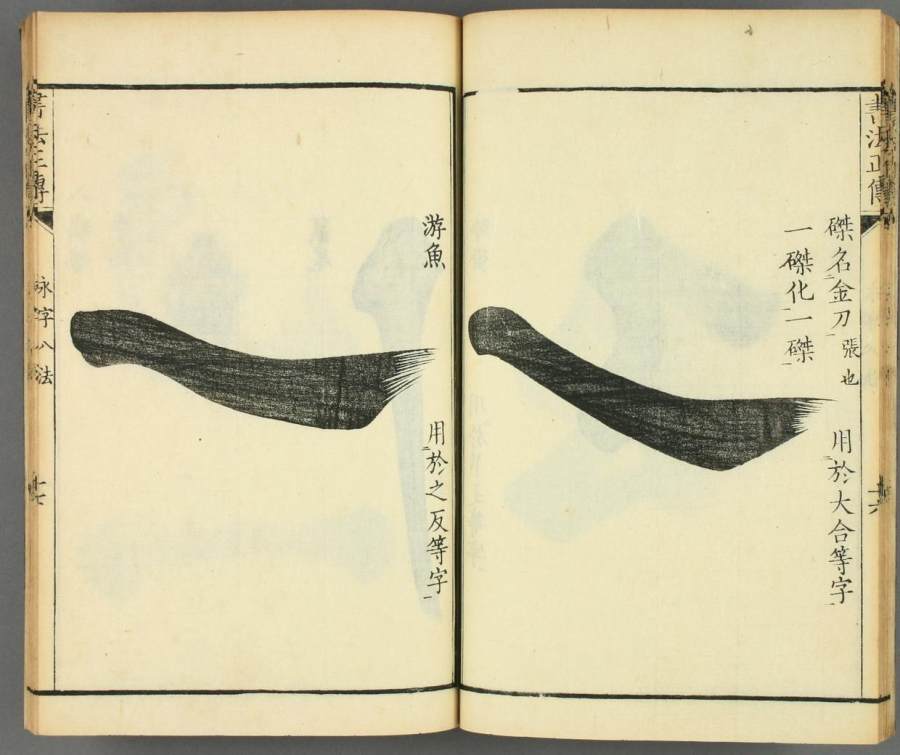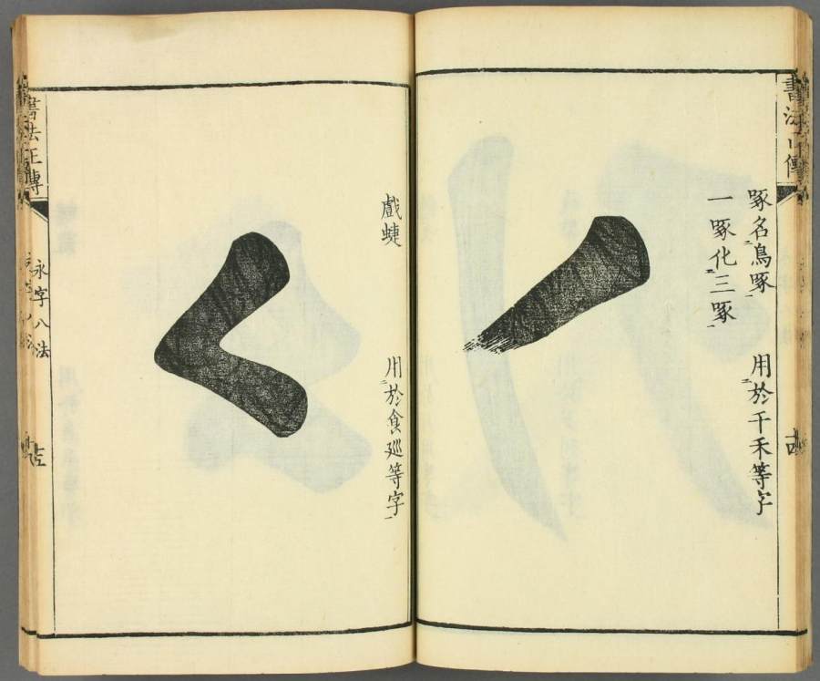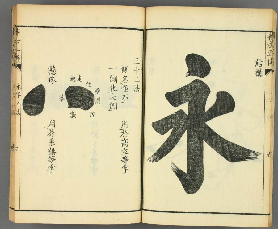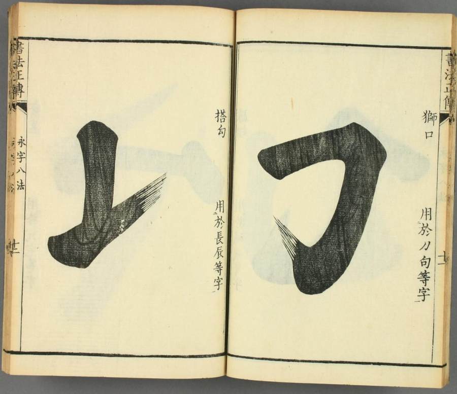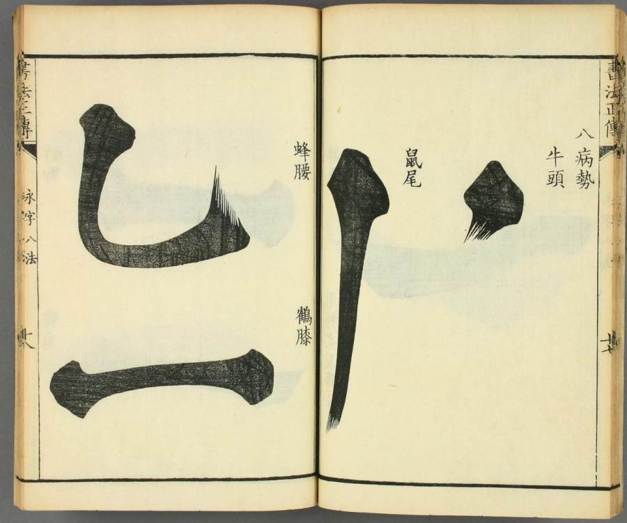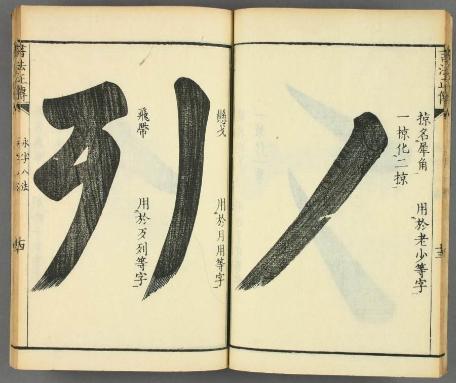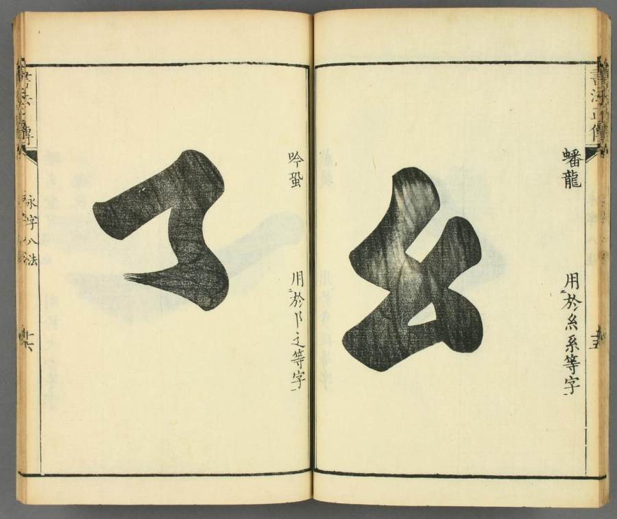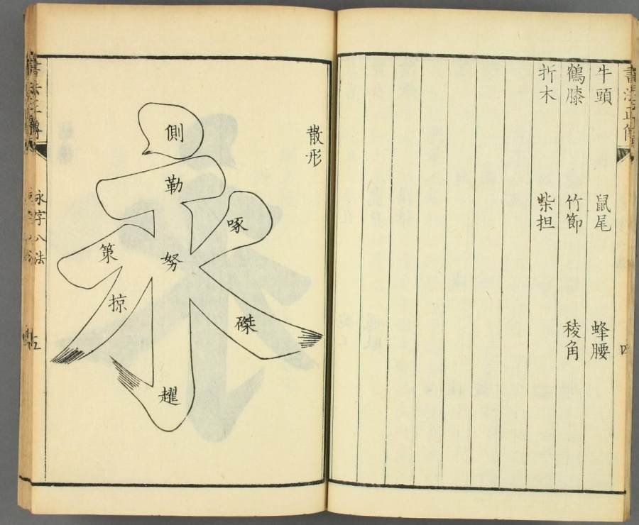 卷三所载《永字八法》,元李溥光撰。李溥光(生卒年不详),字玄晖,号雪庵,大同(今属山西)人。作品共有十一目:八法 历解,把笔八法,运笔八法,永字八法,八病,永字散形,三十二势,八病势,八法分论,颜鲁公《八法颂》,柳宗元《八法颂》。作者从“把笔、运笔、形势、结构、得失”等多种角度论述了“永字八法”之原理,并附录颜鲁公与柳宗元两家的《八法颂》。