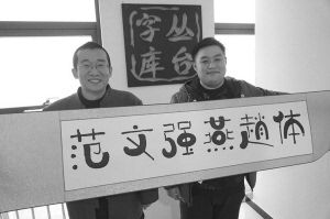 -范老师(左)展示他的“燕赵体”。