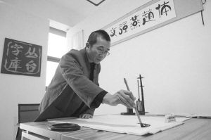 -范老师在书写“燕赵体”。本报记者杨伟广摄