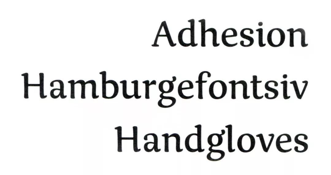 评估:鉴于字体设计的复杂和艰辛,随着工作的进程,有必要对其进行测试和评估。为此,我们使用“样本词”,它们会包含能明确其余字母表现形式的关键字符。典型的样本词有Adhesion、Hamburgerfontsiv和Handgloves。