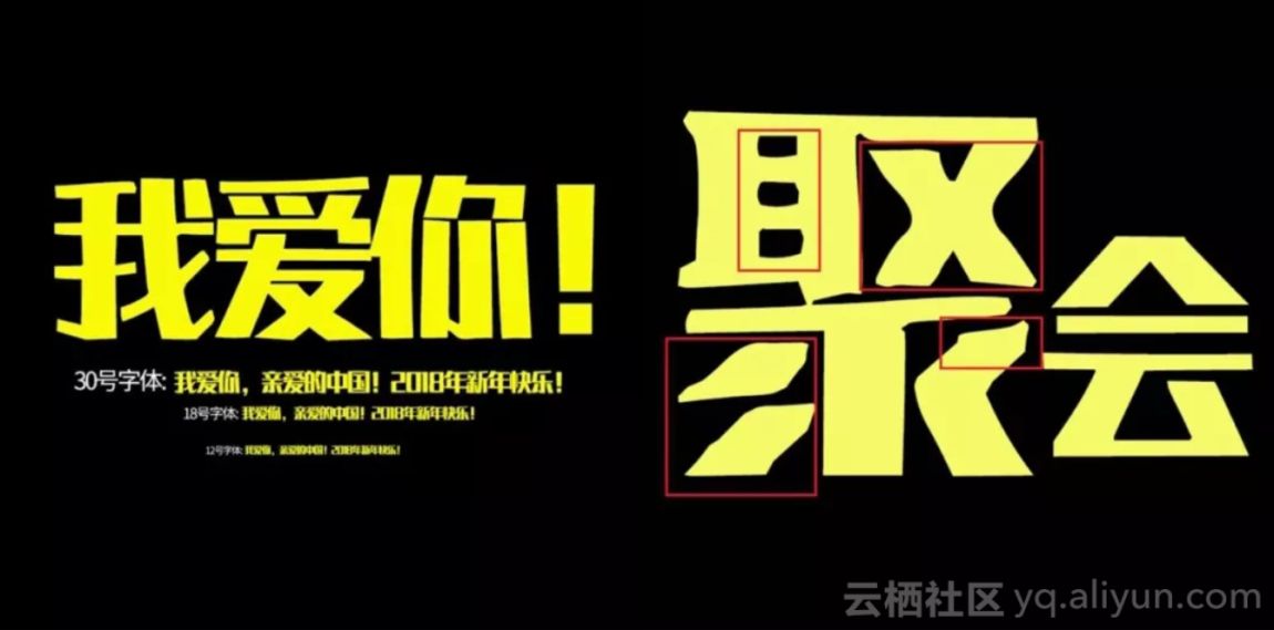 试用后,胡经理也发现了测试版的一些问题,例如螺蛳粉中的“蛳”、聚会中的“聚”字在被放大后会显得棱角不明,像是没有切割完整。另外,阿里这套字体只适用于醒目的大标题,8号、12号大小的字体就不够清晰且略显粗糙。
