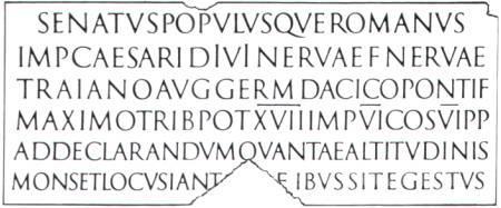 罗马字母时代最重要的是公元1到2世纪与古罗马建筑同时产生的在凯旋门、胜利柱和出土石碑上的严正典雅、匀称美观和完全成熟了的罗马大写体。文艺复兴时期的艺术家们称赞它是理想的古典形式,并把它作为学习古典大写字母的范体。它的特征是字脚的形状与纪念柱的柱头相似,与柱身十分和谐,字母的宽窄比例适当美观,构成了罗马大写体完美的整体。