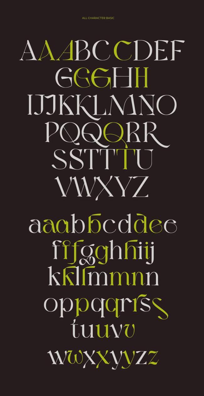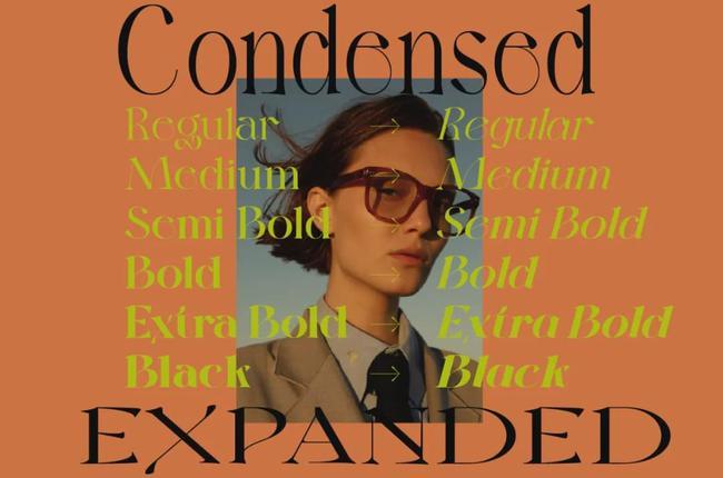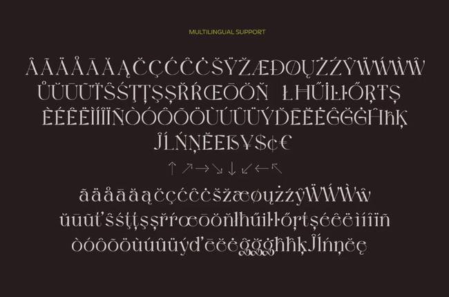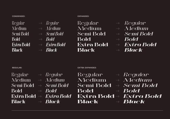 这种字体在显示尺寸和文本尺寸上都令人印象深刻,而三角形衬线的锐利形状和独特的字母形状,显示了它们在标志设计和令人印象深刻的文本编辑使用上的优势。