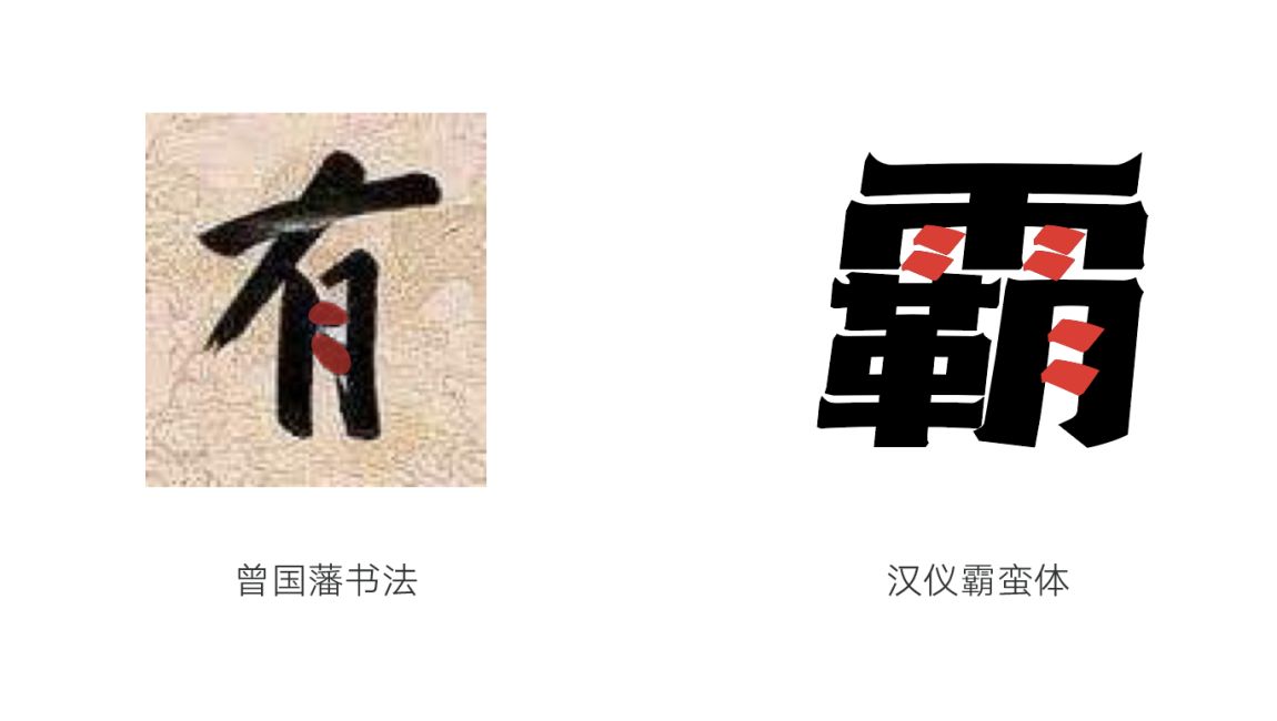 汉仪霸蛮体将宋体字的笔画、黑体字的结构和书法的特点相结合,降低了宋体字收笔笔势的识别度,兼具印刷字体和书写字体的美感。