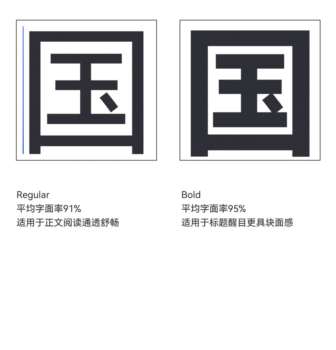 根据用户不同的使用场景,字体的字面率做了差别化处理。