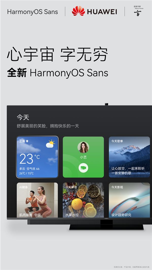 文字与图标使用统一的设计语言,也是为用户呈现多设备互助全新体验的关键要素,HarmonyOS Sans最终呈现如下: