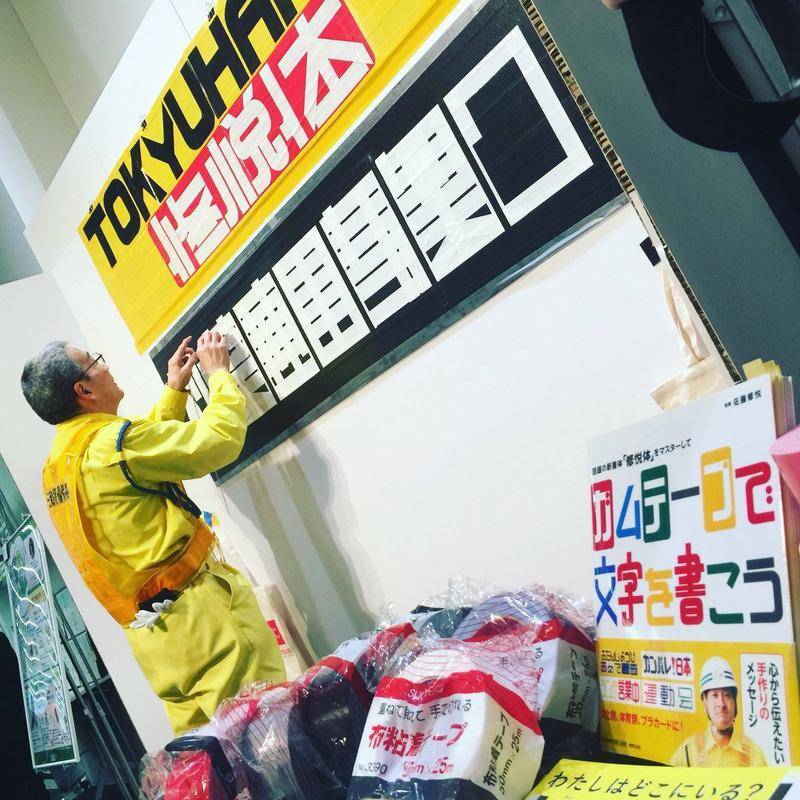如果说佐藤修悦的字体设计是受日本公共道路标识系统潜移默化影响后的总结性输出,那么他在非功能性场合进行的胶带贴制就更贴近艺术化的创作行为。