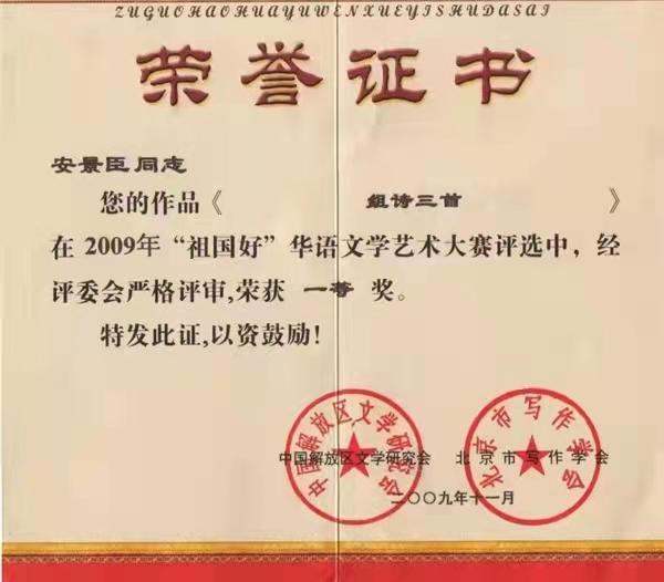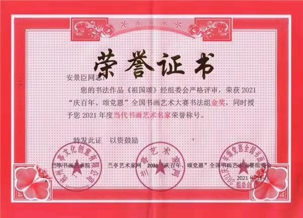 安景臣不但擅长楷行隶篆草,五体皆能,而且能左右手书,书写反字、对各种风格美术字也是信手拈来,只是很少展示,他说那些都是雕虫小技,不值一提。其实,人们常说,书法功夫在书外,安景臣除了书法外,对于文学写作、诗词歌赋、歌词创作、篆刻艺术、国画山水、声乐艺术等皆有研究,且取得了不俗的成绩!曾作诗:“前人精髓需继承、博览群书取真经。推陈出新为我用,独开一派立新风”。他是这样写的,也是这样做的,不但专研书法知识,还研究姊妹艺术与传统文化,但是师古不泥古,不墨守陈规,敢于突破传统束缚而自成一派,受到了社会的认可。获得过各级奖项,得到了权威部门的认可。其中,书法作品参加过世界和平清华大学书法展、被铁人纪念馆、大庆博物馆等收藏。获得过北京写作学会一等奖,歌词作品获大众音乐学会银奖、声乐获艺术中国黑龙江赛区银奖等。一个人在一个领域取得成绩已属不易,何况这么多领域呢?实属难得!但安景臣对此却谦虚地说:“其实艺术都是相通的,学好做一件事,就学会了做一切事”正是他懂得了转益多师、触类旁通,才使他在艺术的海洋里左右逢源,无往而不胜!