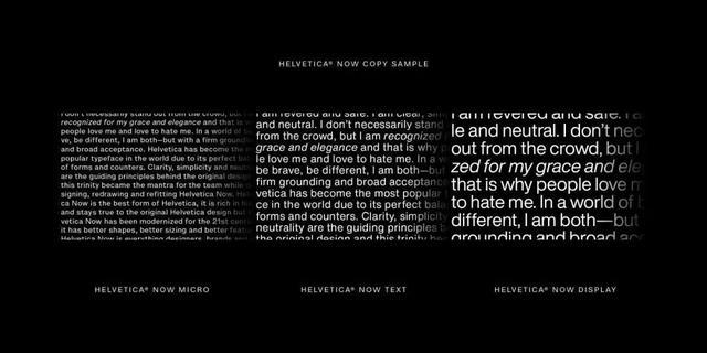 即便Helvetica如今这么受欢迎,作为一款上世纪的字体,在数字化和手机终端崛起的时代,它也需要适应和更新。拥有 Helvetica 字体版权的 Monoytpe 在 2019 年推出了 Helvetica Now 字体,特别为任何屏幕放大或缩小而设计,由数十名设计师和工程师耗费5年时间研究和协作。