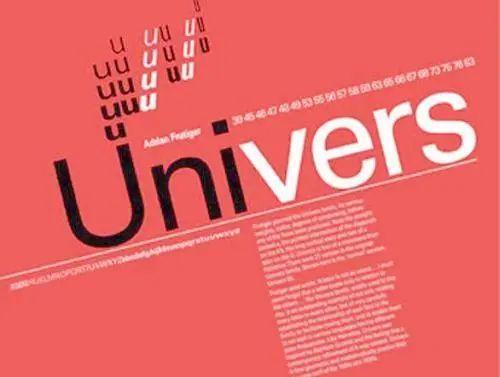 Univers 字体和 Avenir 同样出自设计师 Adrian Frutiger 之手,不过 Univers 是 Frutiger 的早期字体作品,它和 Helvetica 并称为 “瑞士风格字体” ,最初是作为一款照相排印字体所发布的。
