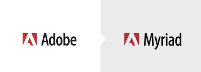 Myriad 字体就是 Adobe 的LOGO 品牌用字,这款字体原本就是 Robert Slimbach 和 Carol Twombly 为 Adobe 定制的字体。Myriad 字体的基底是 Frutiger 字体 —— 而 Frutiger 、Univers、Avenir 三款字体系出同门,都出自 Adrian Frutiger 之手。
