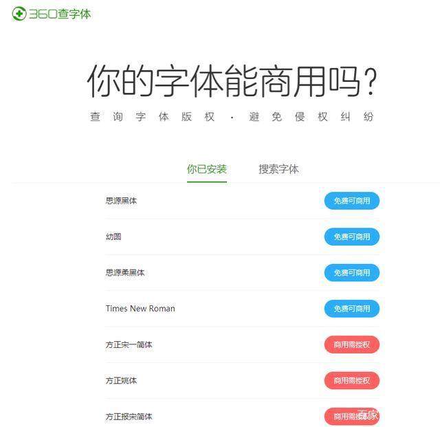 很多时候,作为设计师的我们有时并不确认我们电脑安装的字体是否可以商用,这款神器可以帮到你,他不仅可以查询到你电脑安装的字体是否可以商用,还可以帮你查询到市面上所有的字体是否商用,这样,作为设计师的你就再也不用担心字体侵权了。