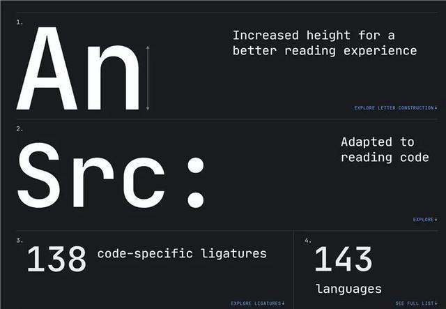 我们考虑了字母的大小和形状等问题;它们之间的空间量,自然以等宽字体设计的平衡;一些看起来不必要的细节和符号之间不清楚的区别,例如(l 和 I);还要和开发字体时的编程连字等。
