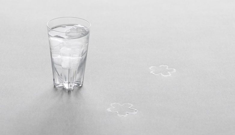 坪井浩尚的目标是设计出能让人“起鸡皮疙瘩”的作品。比如上图这款樱花杯,为了避免难看的水渍,而将杯底设计成樱花图形,就可以在桌面留下绽放的美景。