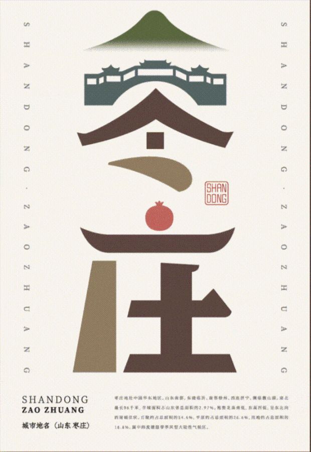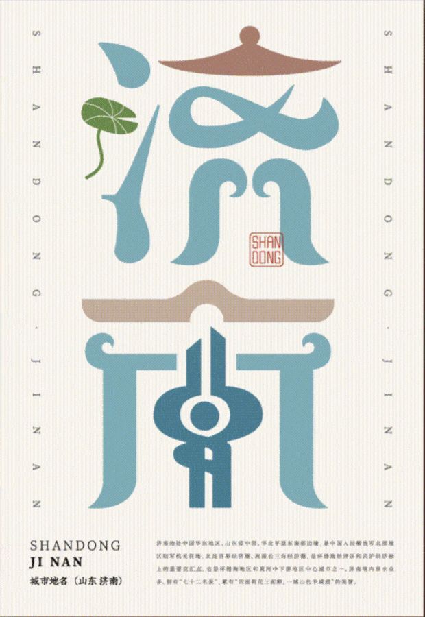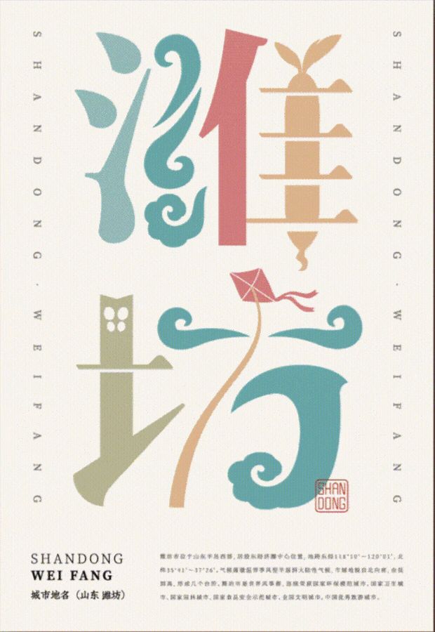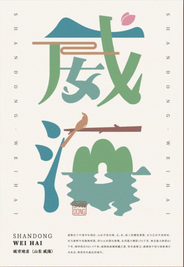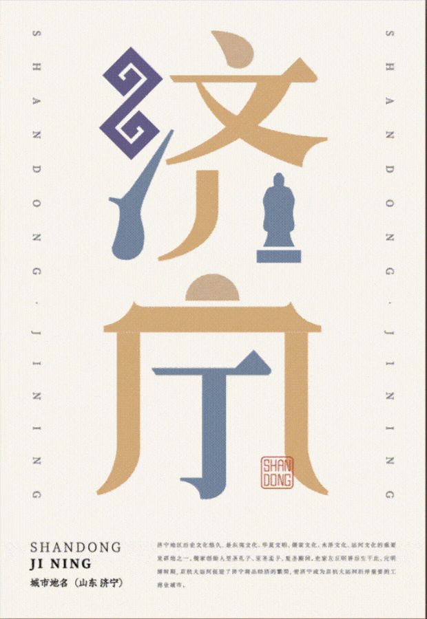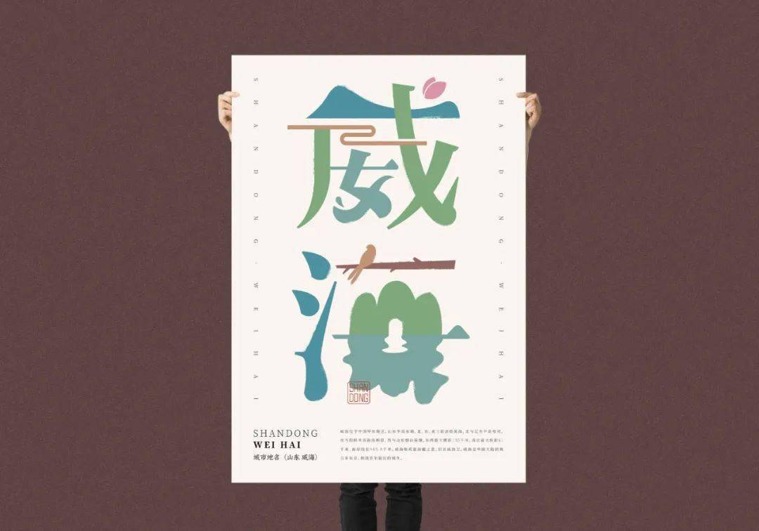 这是工作室近期的一次新尝试,我们将山东省16个地级市做成了字体海报。