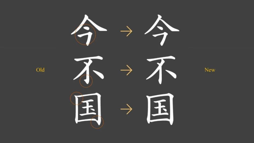 佐藤敬之辅巨著《汉字》中记录了日本活字工业对汉文正楷进行改刻的内容,主要包含三个方向:1.扩大中宫,缩小字面;2.将撇捺斜钩等笔画进行了缩短;3.横笔画的斜度更加统一,增强字体的稳定性。