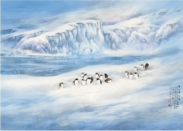 乐震文(右)、张弛夫妇9月25日,“琴瑟和鸣:乐震文、张弛‘替山河立传,为时代留影’联展”在上海宝龙美术馆开幕。这是海上画坛的乐震文、张弛伉俪首次联袂举办联展。在此次展览中,其中既包括他们的代表作,如乐震文一系列巨幅山水,张弛的《云水谣》系列、城市山水题材代表作《海上揽胜·七十长卷》;也有这对艺术伉俪新近创作的南极题材系列水墨,用中国式的笔墨描绘南极。