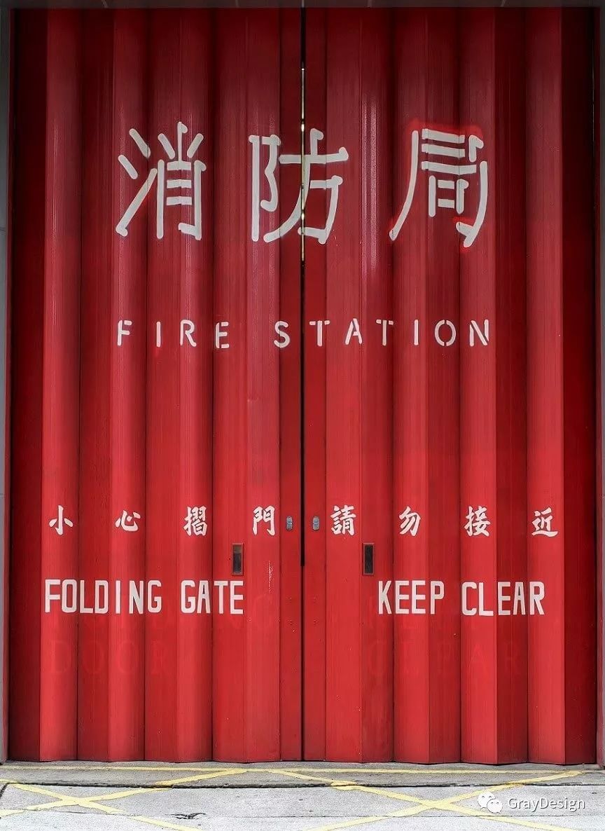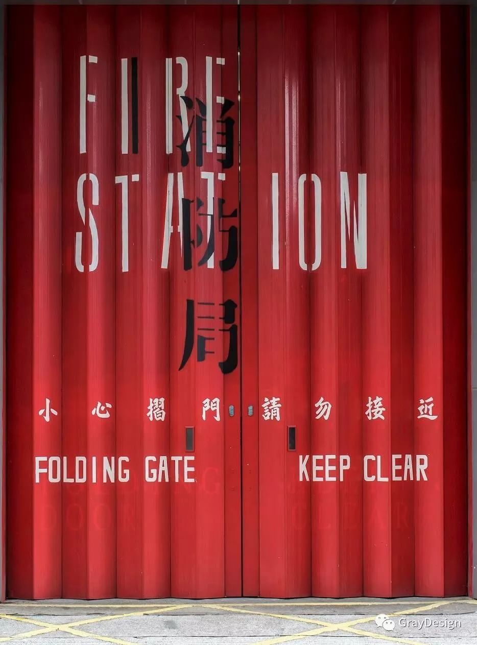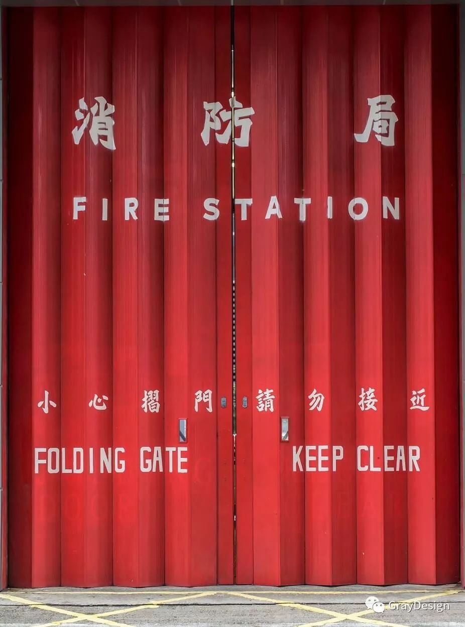 提到字体设计就侃侃而谈的他,肉紧的说老早对消防局的风琴闸产生兴趣。「唔系为今次设计作古仔,我本身经过湾仔同铜锣湾消防局真系会停低望个闸,一来觉得个form好靓,二来留意到上面字体本身比较传统,好富香港特色,我曾经影过相。」他形容闸门有点像舞台的红色绒布幕,但不想把字体造得夸张,只做了个画龙点睛的动作。「字本身已经很playful了。外国的消防局都会把头尾英文字母加大少许,我也参考了他们的设计。」