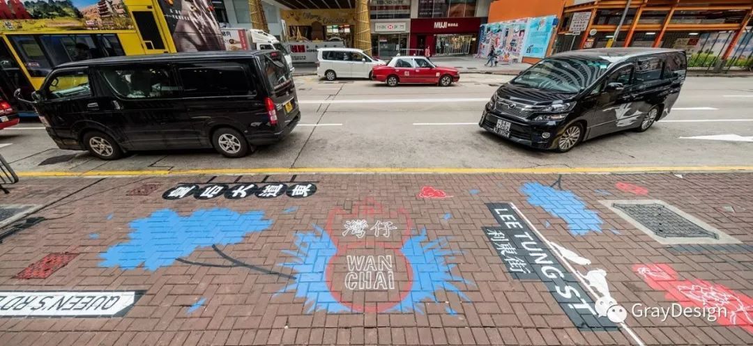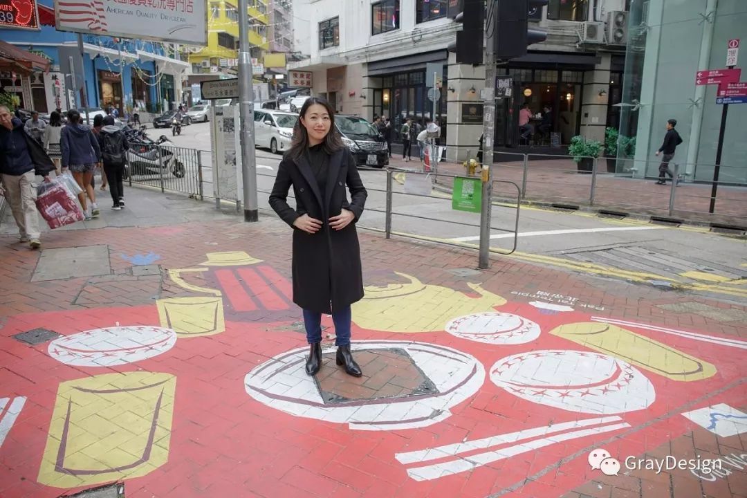 今次「#ddHK设计#香港地」活动伙拍一口设计工作室,由他们策划多项展览。工作室的建筑师梅诗华提到他们事前跟一些湾仔街坊及在区内工作人士办了两场工作坊,探索有什么合适地点,并提到3月份从港铁站接驳到会展的行人天桥将会大翻新。「天桥好多人行,但没什么设计特色。我们想令气氛开心一点。早前跟街坊行过湾仔后山,发现有些特别植物,想以此为主题,所以找了插画家&dear帮手美化天桥。」香港艺术中心正门、蓝屋附近、利东街街口等地面现在都有画作。「除了是画,它们更有指路功能。我们希望大家低头望手机之余,也望望地下。」 她提及由于要展出两年多,画作又画在行人路,耐用要紧。「艺术家要涂四层油,期间有什么损毁我们都会维修。」她希望计划在湾仔试行后,可以延伸至其他地区。「其他区的消防局可否有另一个设计意念呢?社区可否利用设计达至更美观呢?希望大家都可想想。」