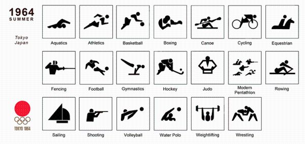 1964年,以设计评论家胜见胜(Katsumi Masaru)为中心,11位平面设计师制作的东京1964奥林匹克运动会运动图标,这套让全世界无论哪种语系的人都能够理解的图标,也成为奥运会历史上首次引入竞技图标。