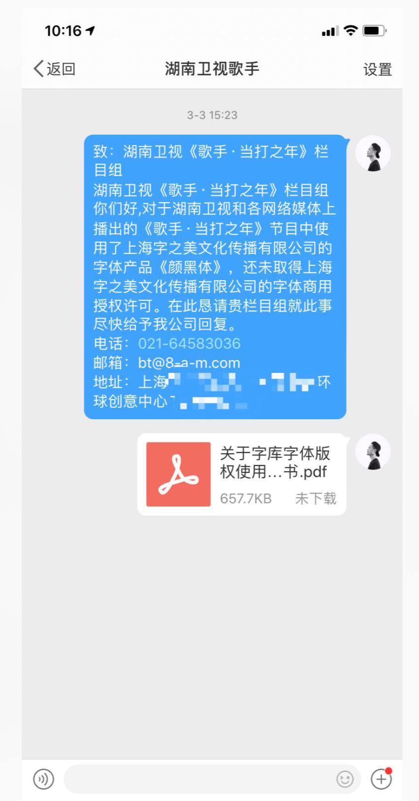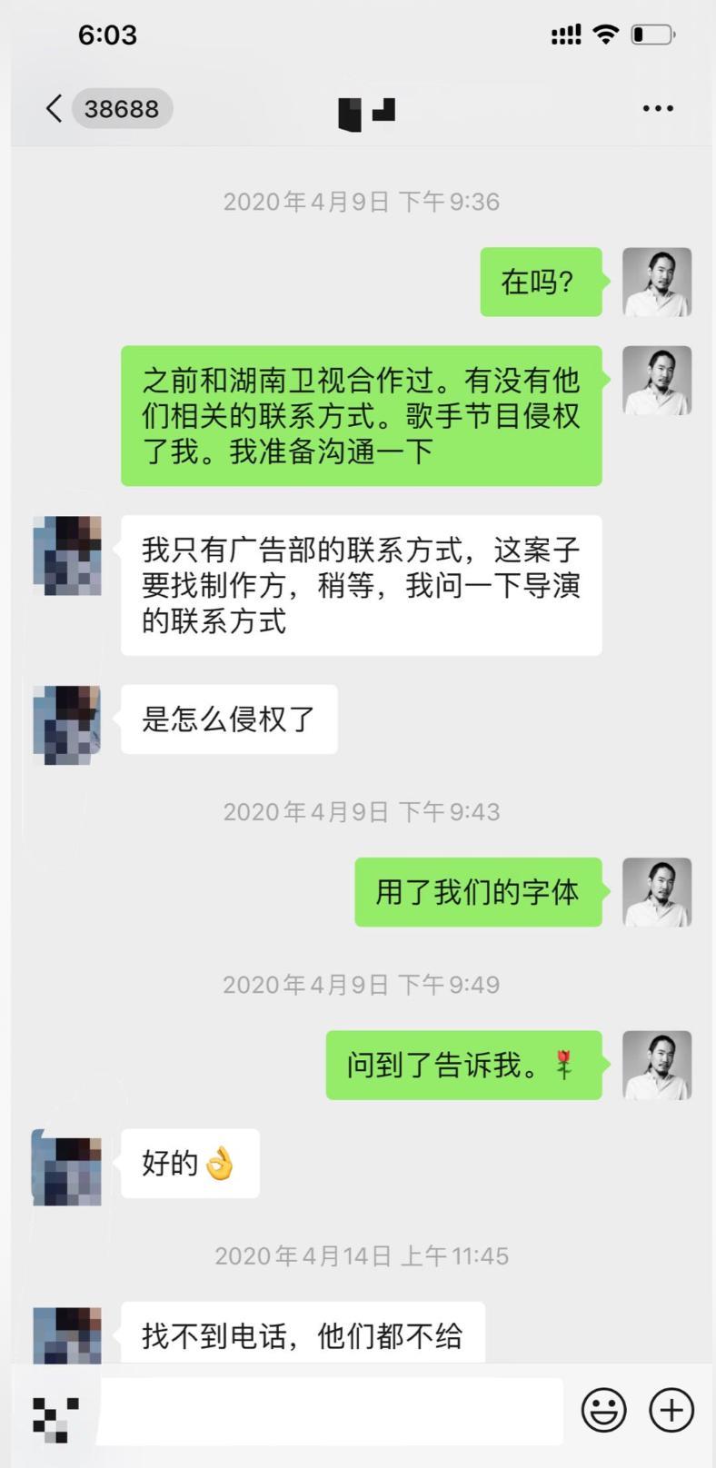 大约在2020年三月初的一天,也是公司第一天上班,我得知了歌手节目使用了我们的字体!那一刻,我还有点高兴,我们设计字体就是给大家用的呀,没关系,沟通一下。同事告知我说,他们已经去联系,暂时没有回应。