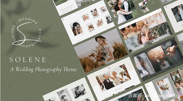 在Solene主题中,所有大写字母的标题和斜体字幕的组合都创建了典型的婚礼网站精致外观。