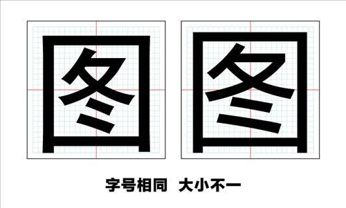 字面大小:“就是在字面框不变的情况下,可以把字设计成大小不同的字,大字称字面大,小字称字面小。”