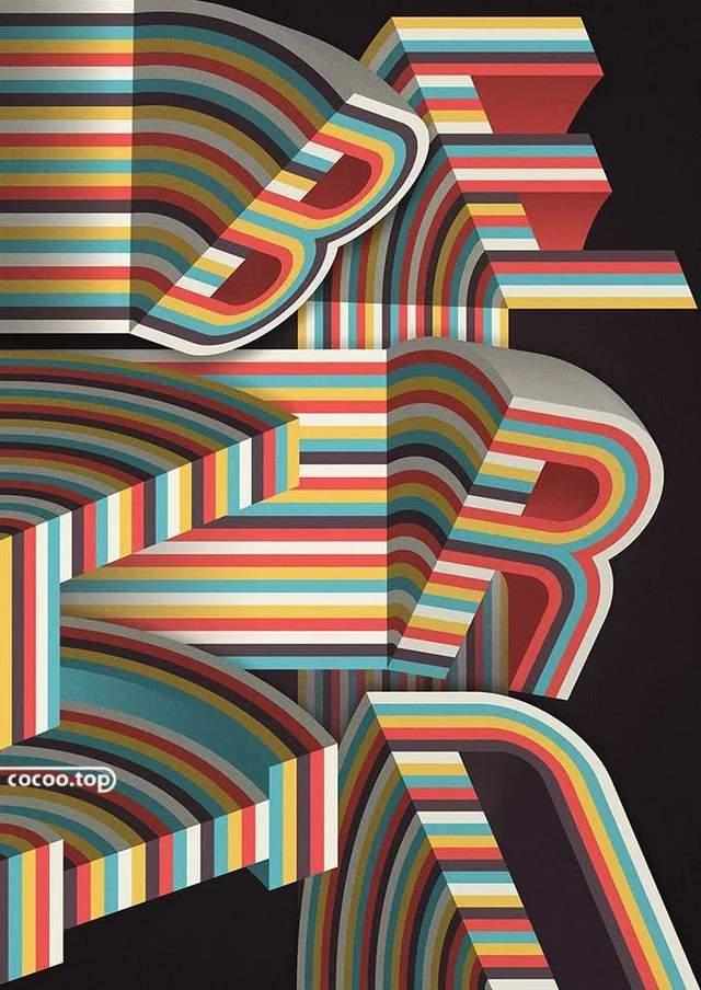 在英文字体设计时可以巧妙地利用正负形之间的虚实关系,增强作品的对比效果,使字体更具有活力,另外也可以采取正负形颠倒的手法即负形是图正形是背景,用正形去烘托负形形成视错觉,以增加画面的层次和立体感。