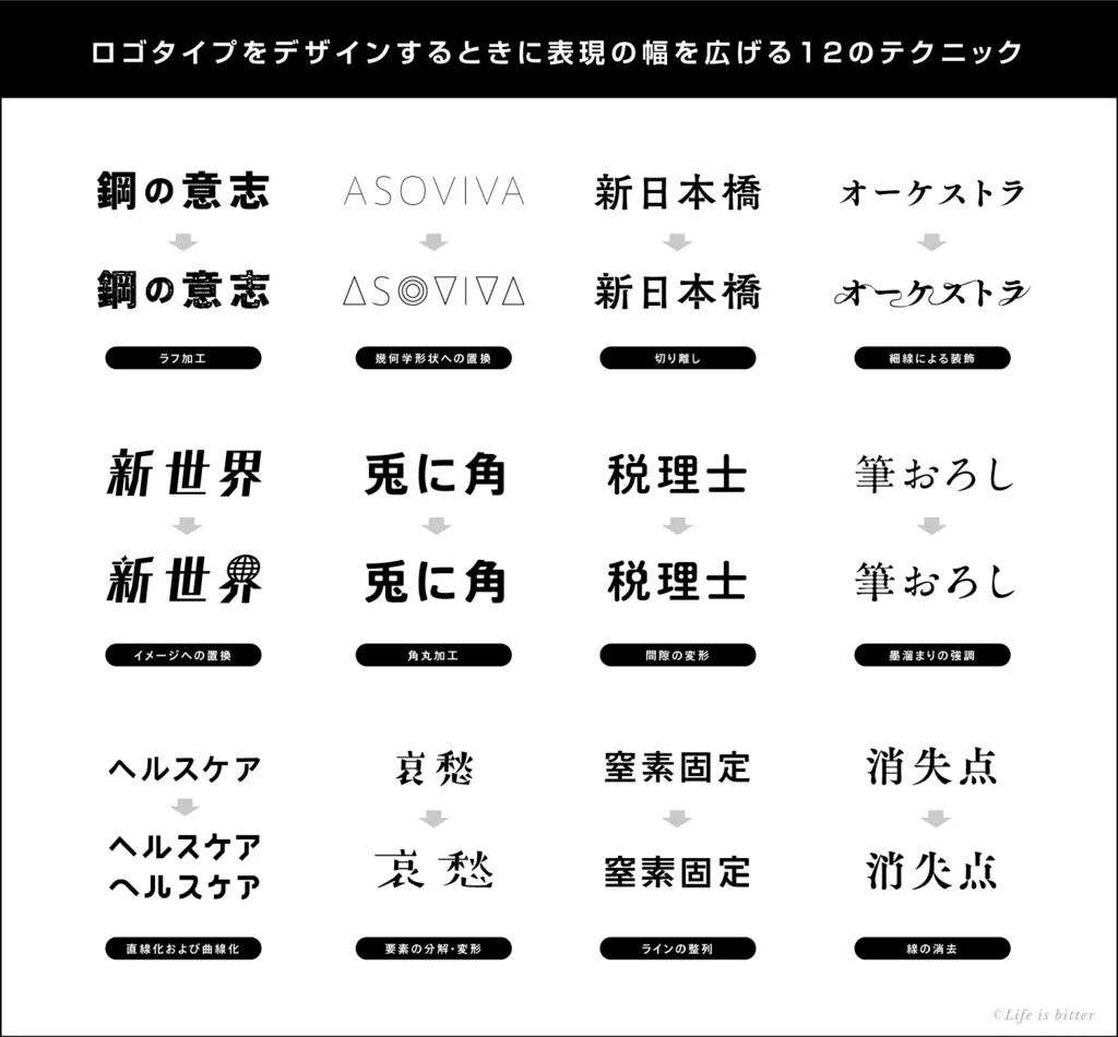 日本设计师 カワラ 非常喜欢字体设计这次,他总结了字体设计时经常尝试的方法,并分析了各种字体以及可以分解的技巧。希望它对于那些对字体制作感到困惑的人有所帮助。